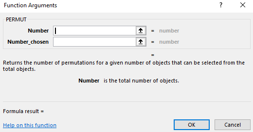 Luckily you really don’t need to know the formula to calculate a permutation. The Excel function for permutations is PERMUT: