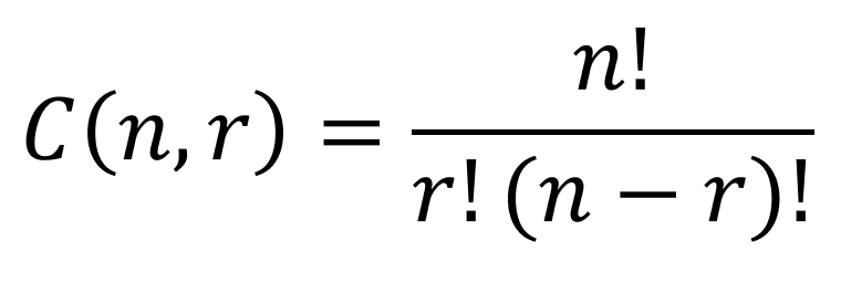 Now suppose you and 29 other individuals are in the running for 3 prizes, all with the same value. Your names are in a hat and all three names are drawn at once. Because no order or arrangement is involved, this type of counting technique is called a combination. The combination formula also calculates n objects taken r at a time:
