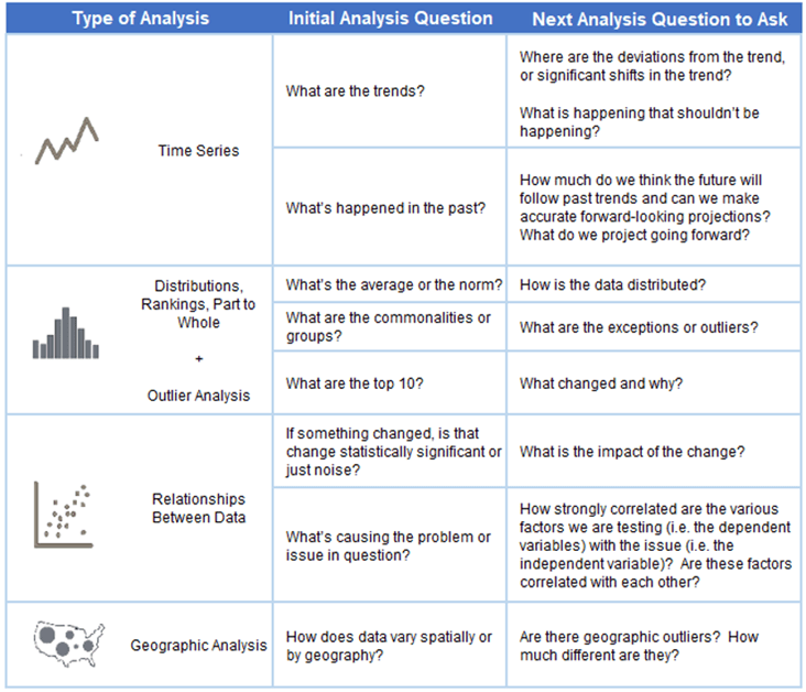 Once you determine which variables are involved in your analysis, you can choose the appropriate chart to dig deeper into the insights. Because I chose to focus on gold medal finish times over the years, a time series analysis is appropriate. Here is a great reference tool for matching your analysis to your questions: