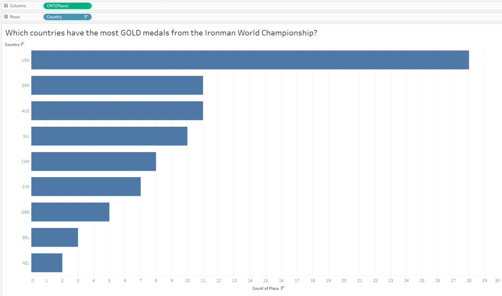 So where do you start? I always start with questions. Like, “Which countries have had the most medals in the Ironman Championship?”